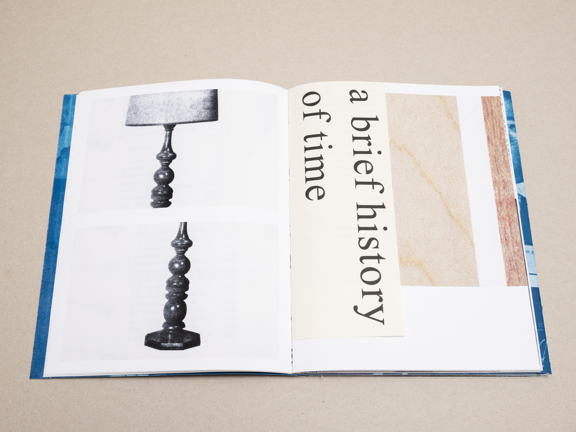 Drawing on the parallels between dreaming and collecting, This Man is Drilling a Well is sourced from a single drawer found in horologist Greg Arp’s clock shop. The book tumbles illogically through a constellation of fragmented images that reflect a junk drawer, a fold in spacetime where all ephemera accumulate in disorder: schematics, patterns, magazine pages, furniture ads, wood grain samples, paper, paperclips, wood scraps, photographs, letters, and various odds and ends. The ephemera––collected for forty years––recollects a modern narrative of movement, construction, and fragmentation, where the refutation of obsolescence resists the authority of time; everything is recycled, reused, and reappropriated for a renewed life.