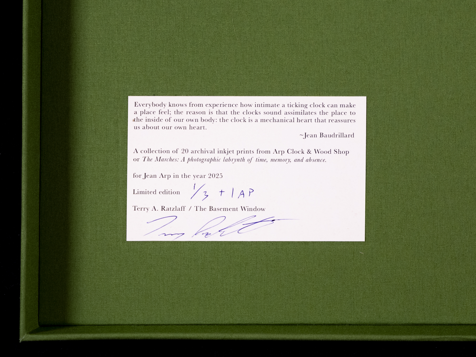 Made in collaboration with Greg, This Man is Drilling a Well was conceptualized as a tangential collection of images connected to the larger context of The Marches: a photographic labyrinth of time, memory, and absence. The work aims, in part, to understand better how humans attempt to construct and control the experience of time while carving out the infinite depths of Arp Clock and Wood Shop.